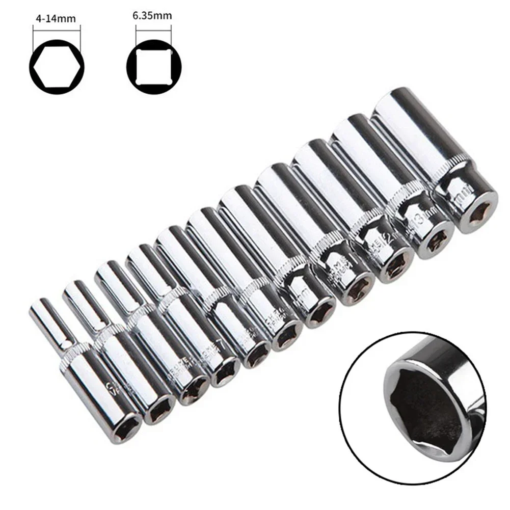 1pc 1/4 Hex Socket Adapter Chromium-vanadium Steel Deep Socket Wrench Head