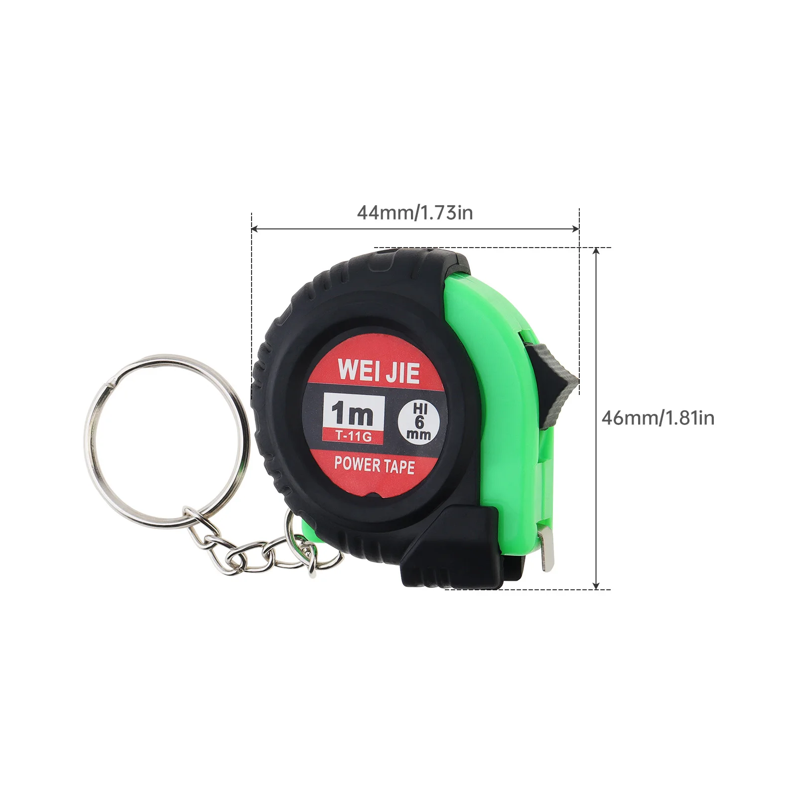 Keychain Tape Measure 3ft 1m Green Yellow Mini Measuring Tool with Metric Inch Scales