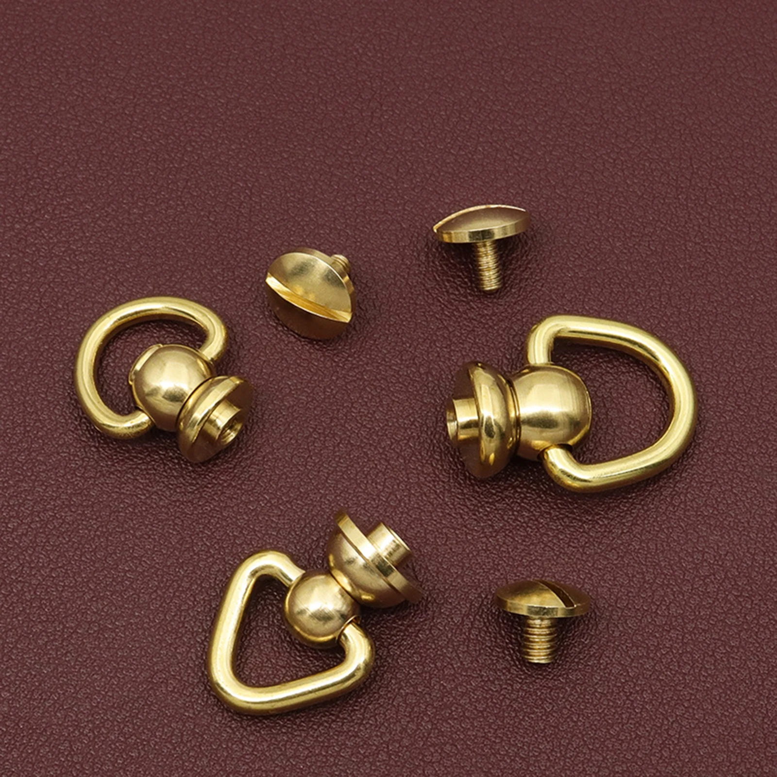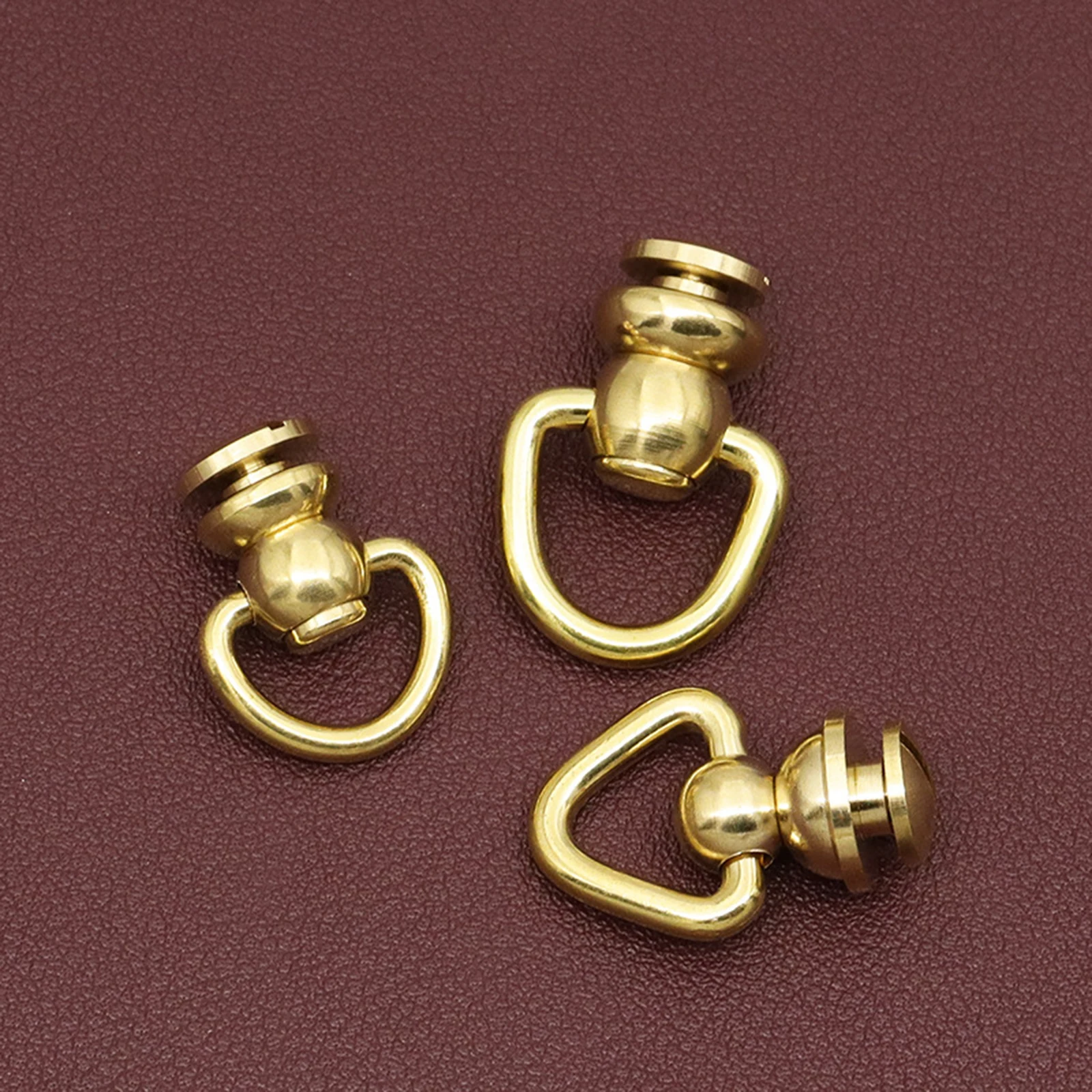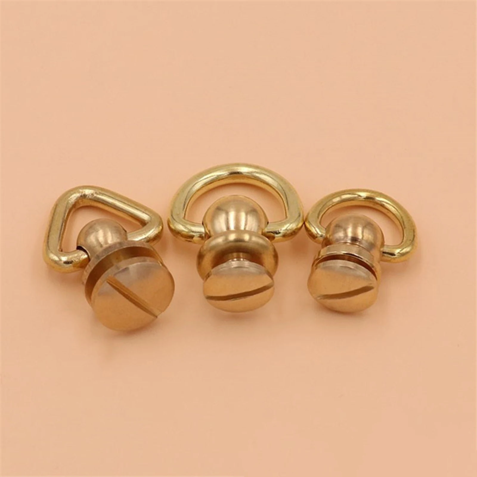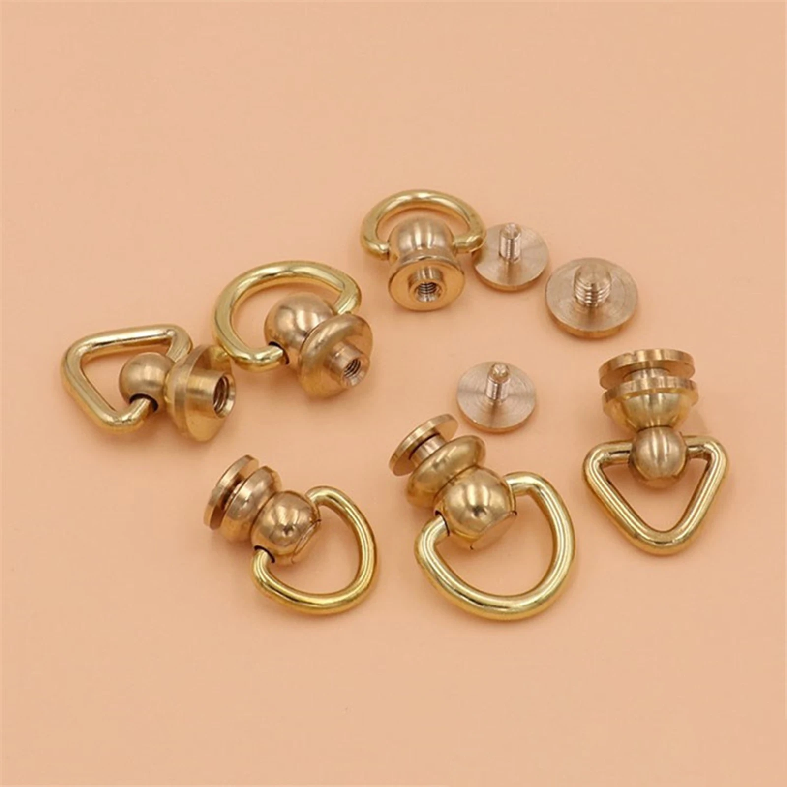 1PC Solid Brass Rivet and Studs with Screws D Ring and Triangle Design Rotate Head Spikes Buttons with D Ring Leather Craft Tool