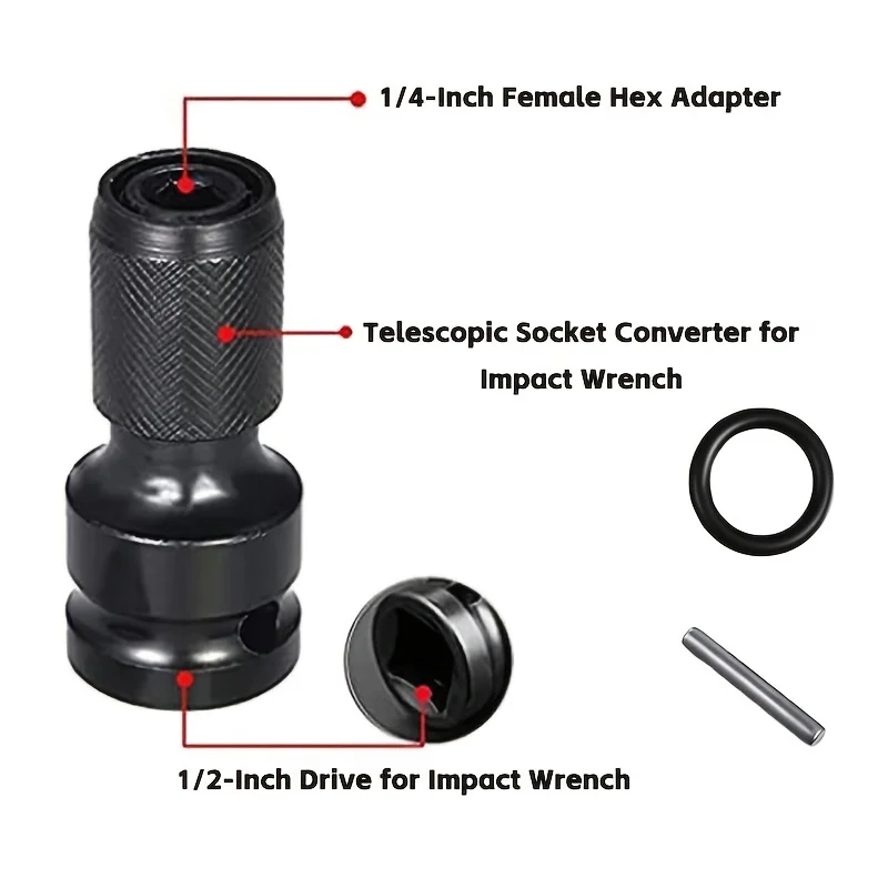 This 1/2 Inch Square to 1/4 Inch Hex Ratchet Socket Wrench Adapter is an essential tool for automotive and woodworking tasks. It allows you to convert 1/2″ square female threads to 1/4″ hex female threads, making it compatible with various air and power impact wrenches.