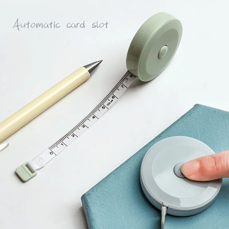 This is a retractable tape measure designed for clothing and sewing projects. It features a Nordic style and is perfect for measuring body dimensions, fabric, and other crafting needs.