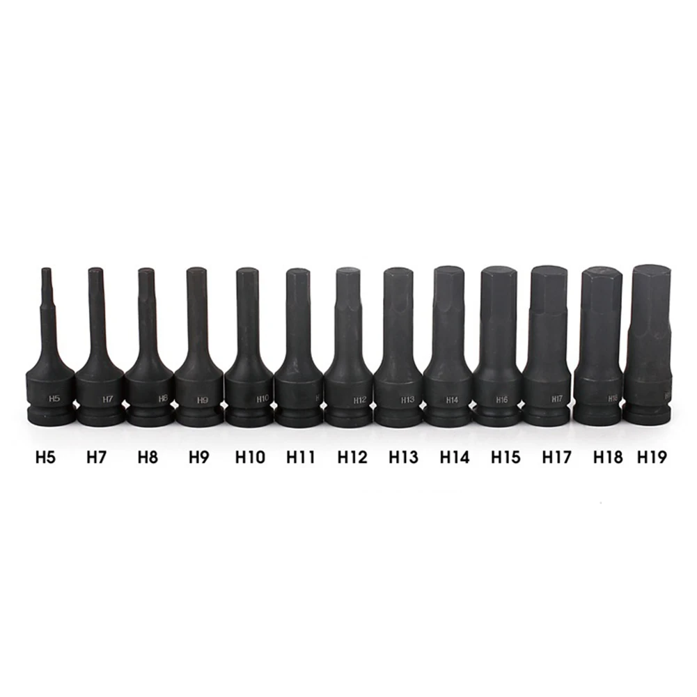 This Electric Drill Socket Adapter is designed for use in factories, repair shops, and home improvement projects. It features a 1/2” (12.5mm) square interface and includes a variety of hexagonal head sizes ranging from 4mm to 19mm, making it versatile for different tasks.