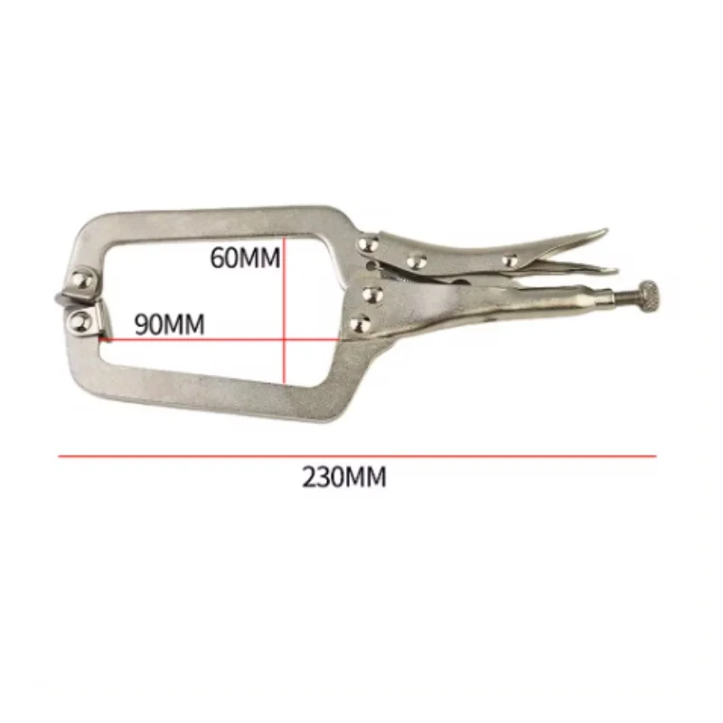 This 1Pcs C Clamp Locking Pliers is a versatile hand tool designed for woodworking and welding tasks. With a length of approximately 23cm, it features wide opening jaws that can clamp various shapes securely. The tool utilizes a turn screw mechanism to adjust pressure and fit different workpieces, ensuring a strong grip.