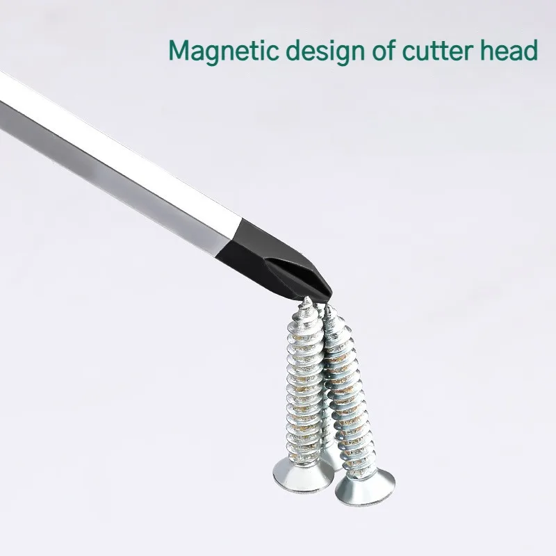 - Strong magnetic cutting head that securely holds screws