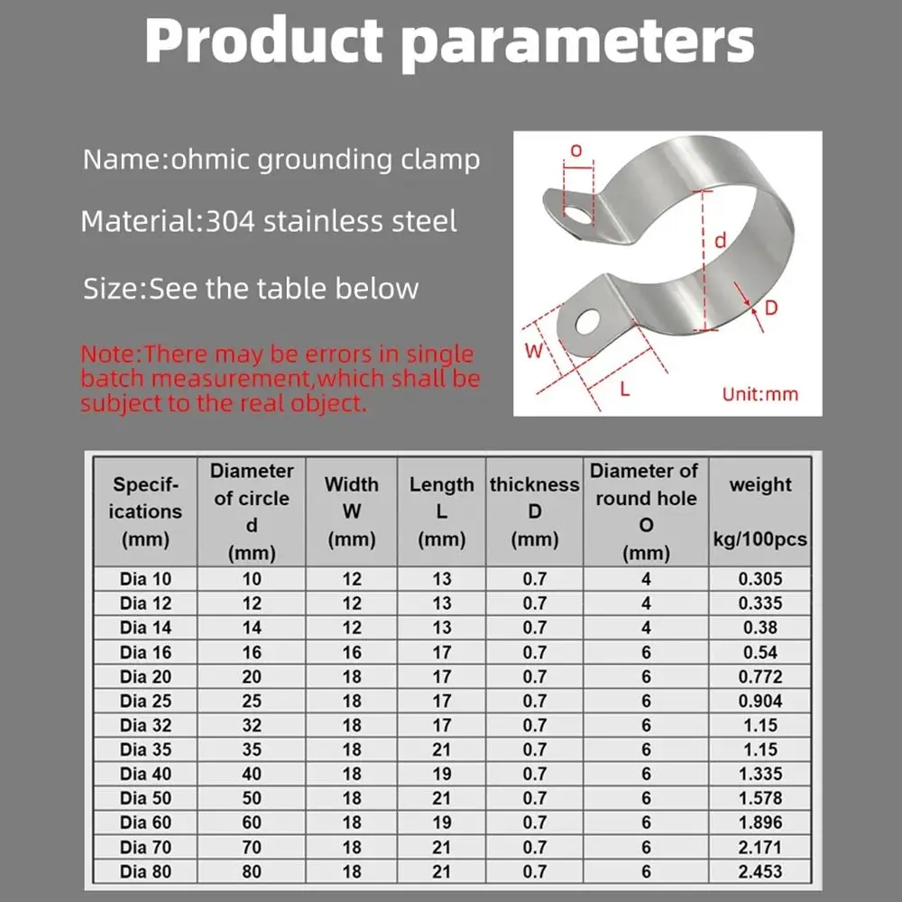This is a high-quality stainless steel ohmic grounding clamp designed for secure pipe fastening. It is suitable for various applications and comes in multiple sizes to meet your needs.