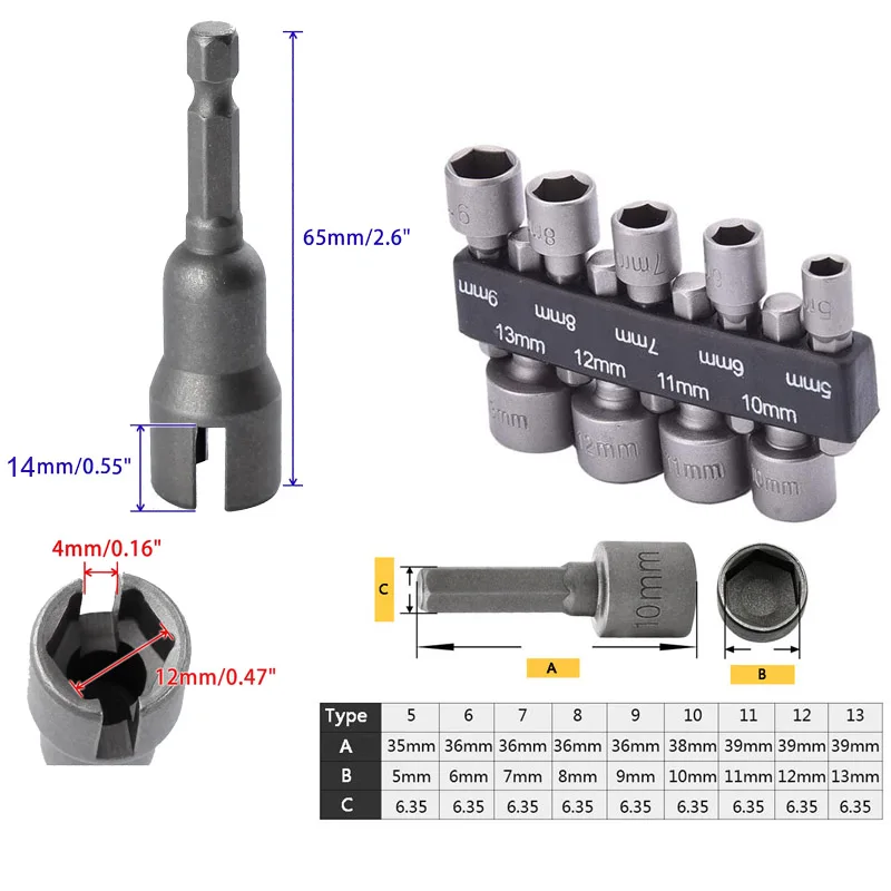 1/4 Hex Shank Wing Nut Driver Set Slot Wing Nuts Drill Bit Socket Wrenches