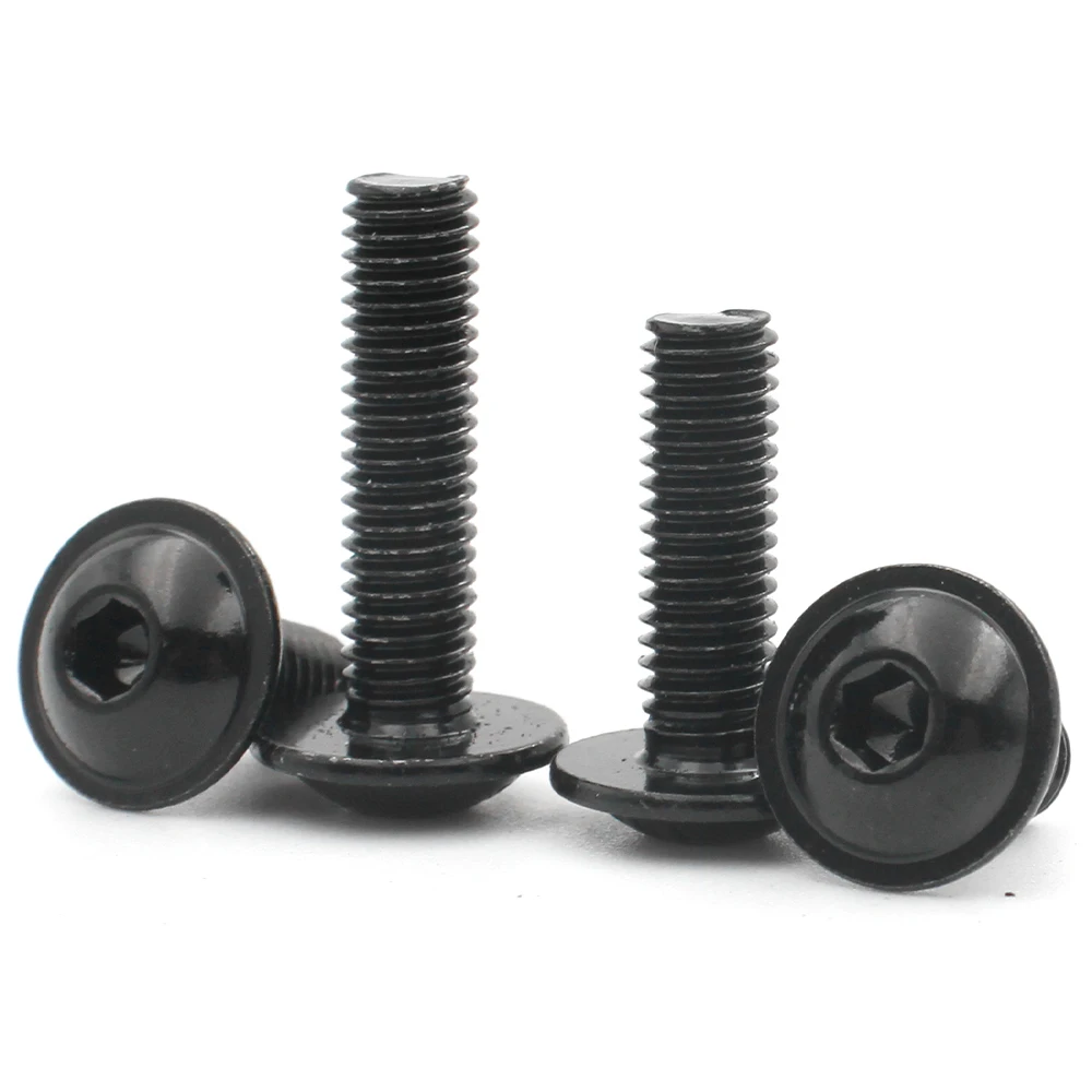 Introducing a versatile set of black 304 stainless steel hexagon hex socket round head screws with washers, perfect for various fastening needs. This collection includes multiple sizes to accommodate different projects, ensuring you have the right fastener at hand.