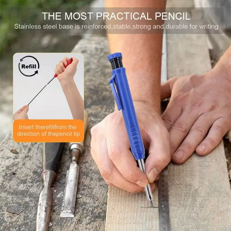 2.8mm Solid Carpenter Pencil Set Mechanical Pencil with Refill Cap for Woodworking