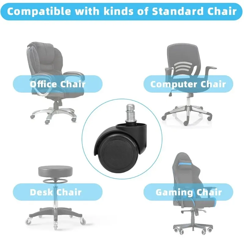 Upgrade your office or gaming chair with these 2 Inch Replacement Soft Mute Desk Caster Wheels. Designed for heavy-duty use, these wheels provide a safe and smooth rolling experience, making them perfect for various types of furniture.