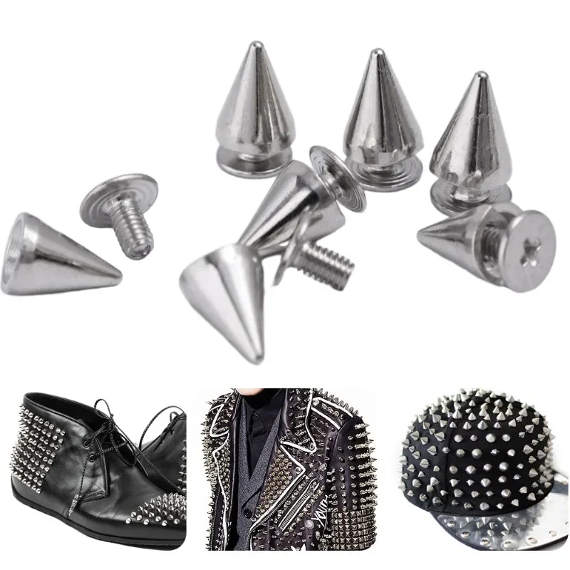 20MM 14MM 10MM Silver Rivets Round Cone Spikes DIY Punk Cone Studs Supplies