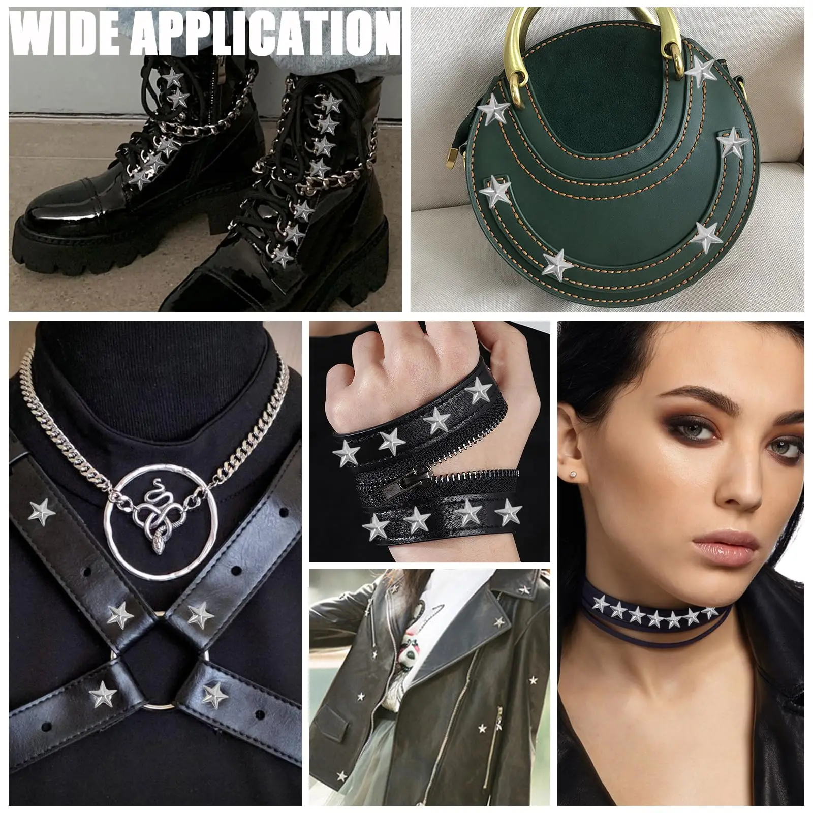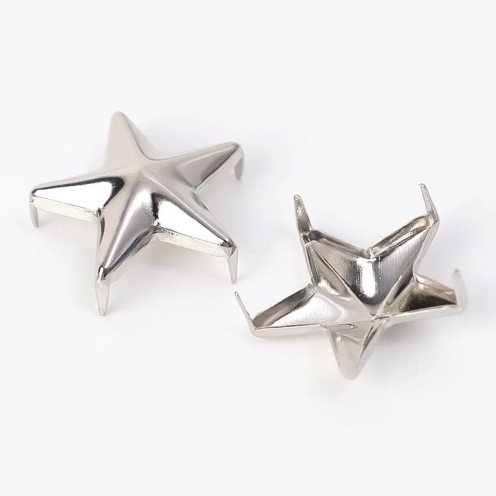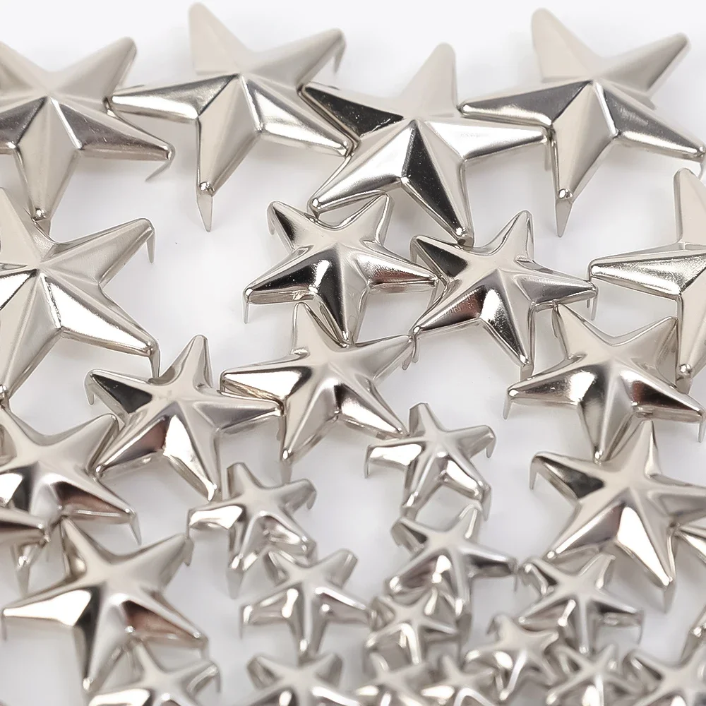 These metal star rivets are perfect for adding a punk rock flair to your clothing and accessories. Ideal for DIY projects, these decorative studs can enhance the look of garments, bags, and more.