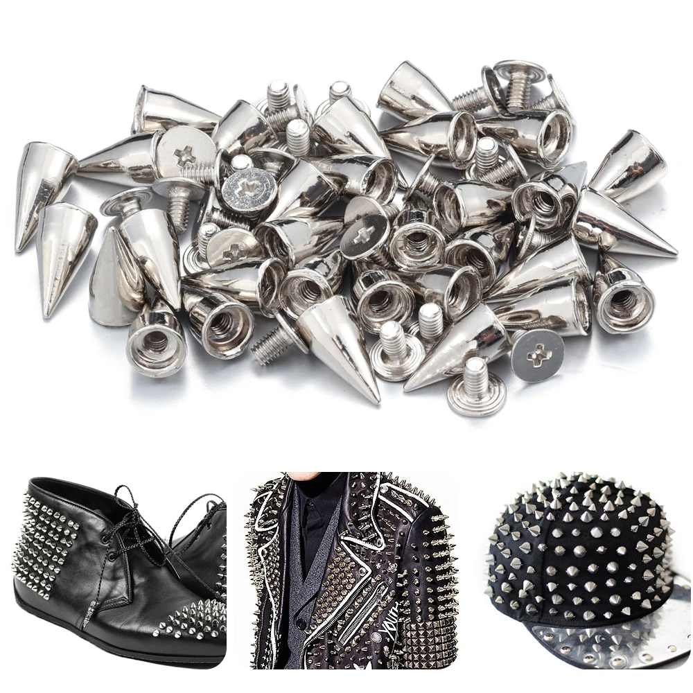 These spiked punk rivets are perfect for adding a bold touch to your DIY projects. Available in multiple sizes, they are ideal for clothing, bags, shoes, belts, and hat decorations. Each rivet comes with a screw back for easy application.