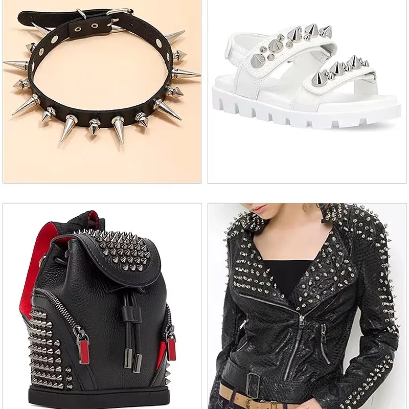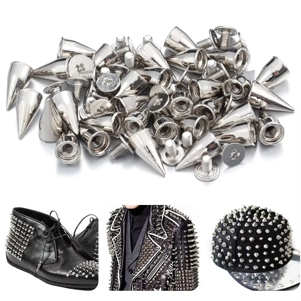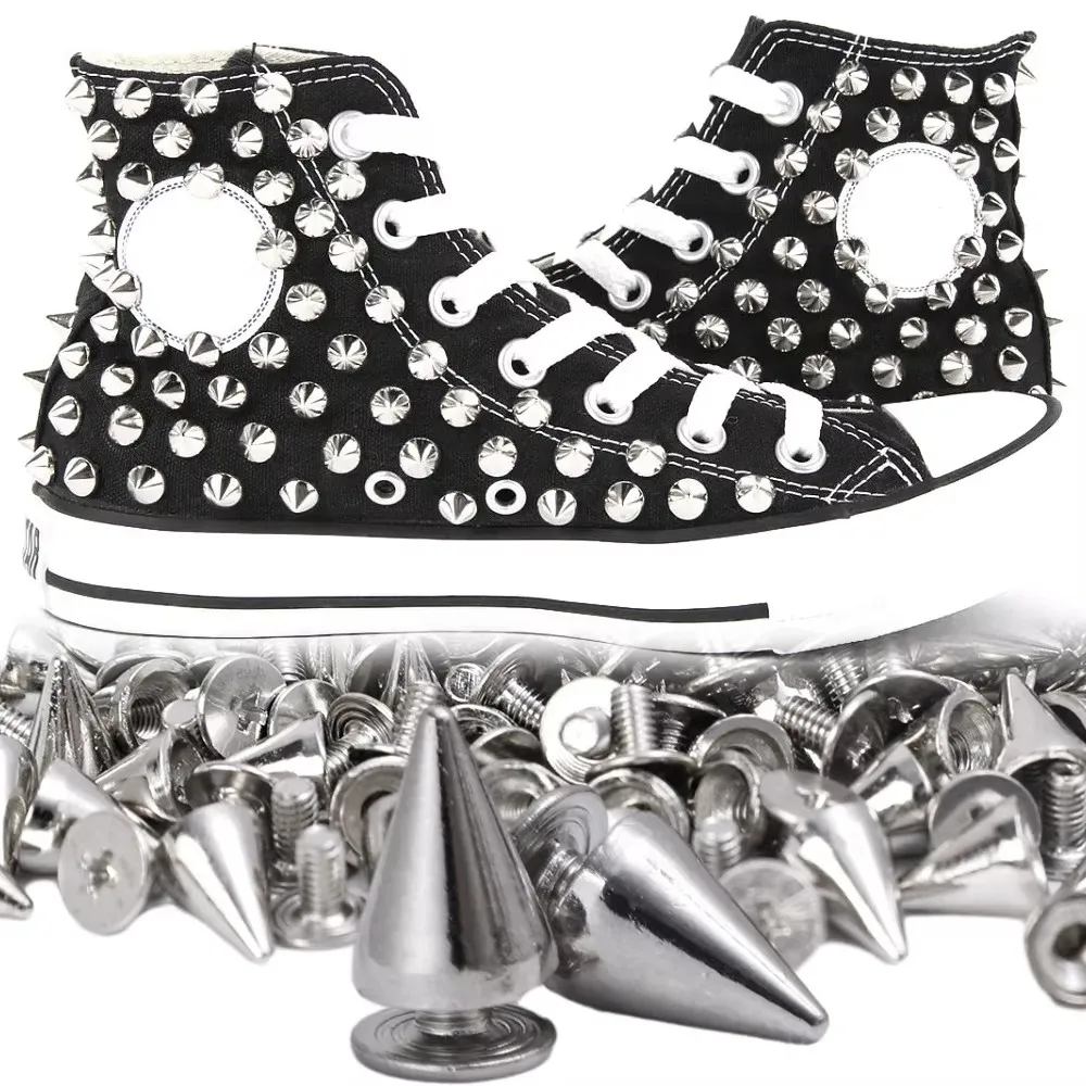 These spiked punk rivets are perfect for adding a bold touch to your DIY projects. Ideal for clothing, bags, shoes, belts, and hats, these rivets come in multiple sizes to suit your crafting needs.