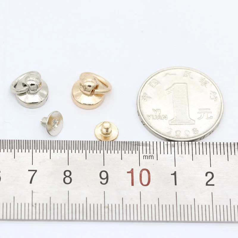 20 pieces of 9.5mm Gold Nickel Hematite Solid Metal Button O Ring Round Head Stud Screwback Leather Craft Bag Chicago Screw Nail Rivet.