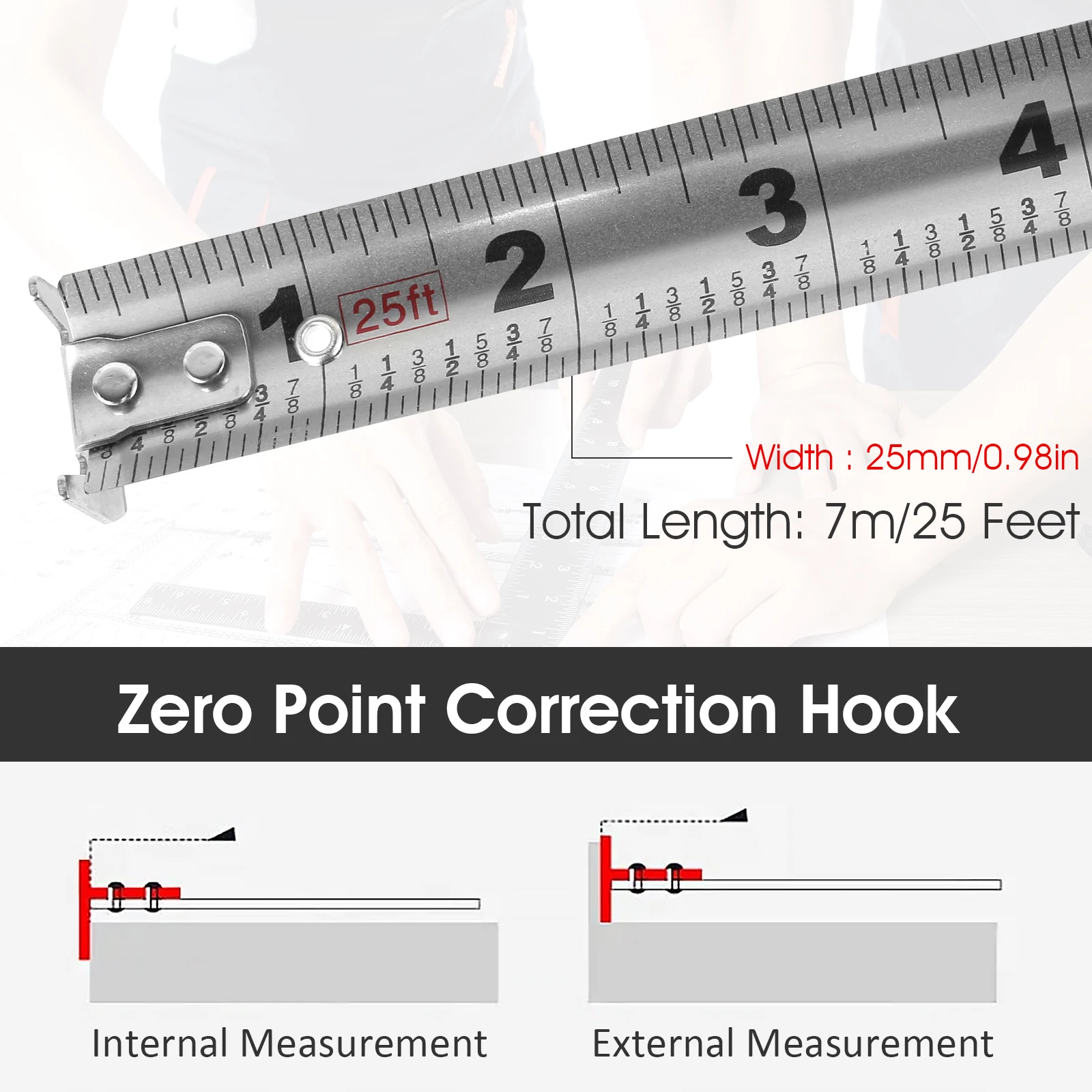- 25FT Retractable Tape: Maximum measuring length of 7.5m/25ft, suitable for a wide range of measuring tasks.
