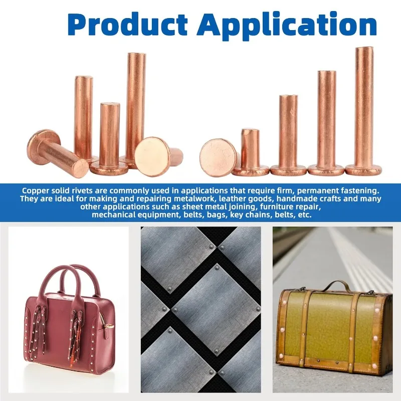 These 270 pieces of flat and round head solid rivets are designed for various applications, particularly in leather working. They come in three different sizes: M2, M2.5, and M3, making them versatile for different projects.