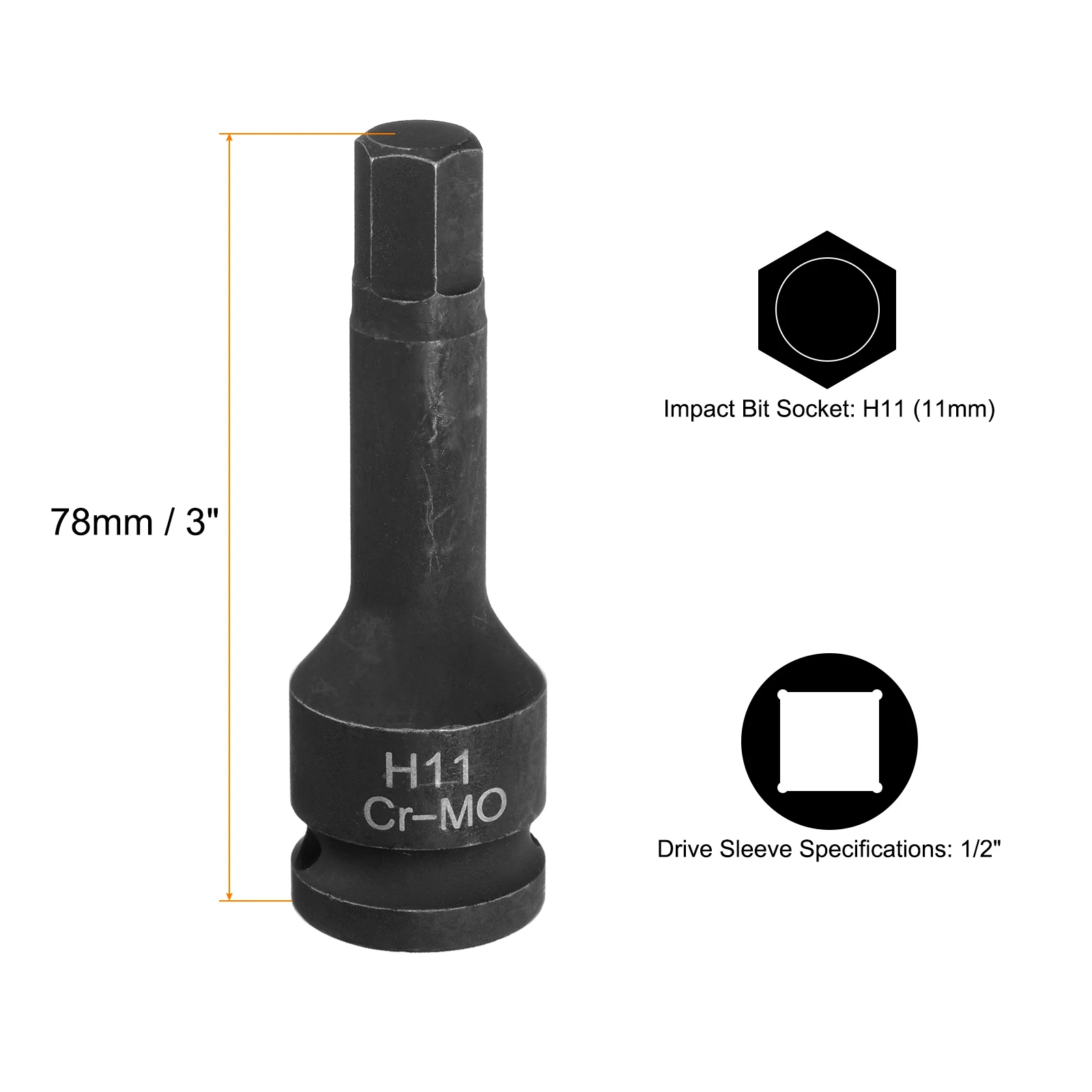 H4-H22 Hex Impact Bit Socket 1/2 Drive CR-MO Steel Screwdriver Adapter