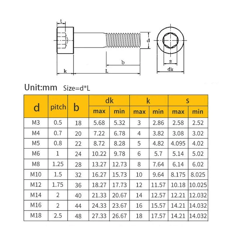 - Available sizes: M4, M5, M6, M8, M10, M12