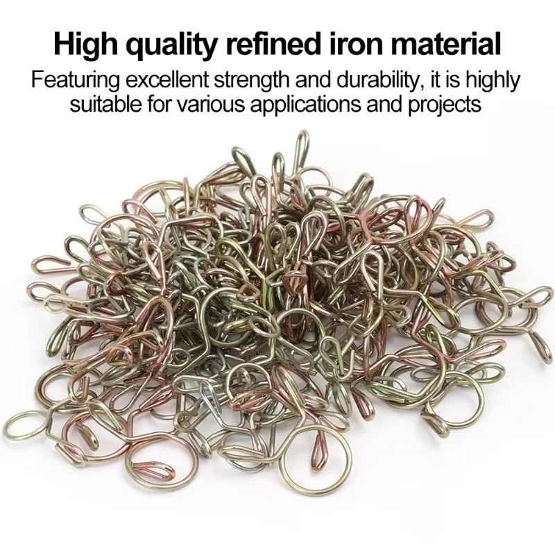 Product Description. This set of 30 oil hose clamps is designed for various applications, including motorcycles, scooters, ATVs, and mopeds. Made from durable iron, these clamps ensure a secure fit for fuel lines, providing reliable performance in different environments.