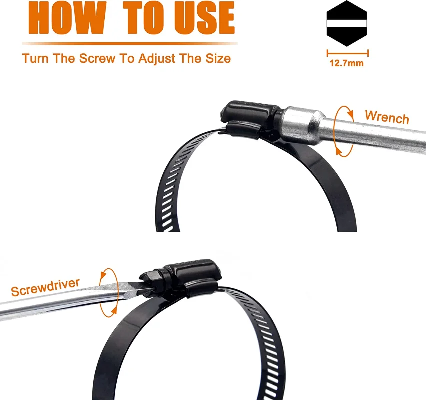 - Adjustable range from 6mm to 38mm, accommodating various hose sizes.