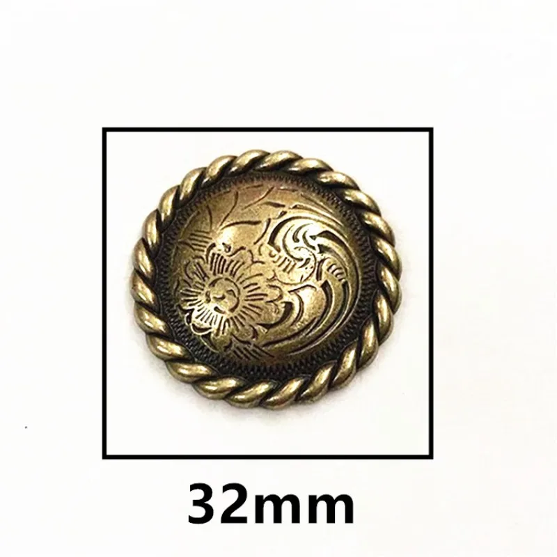 32mm Round Rope Edge Concho Purses Leather Decoration Buckle Conchos Metal Screw Back Buttons Handmade Clothes Accessories