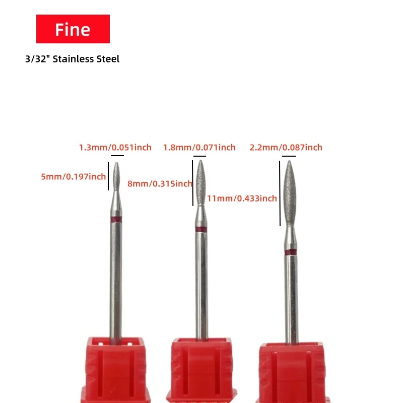 3Pcs Nail Flame Diamond Drill Bit Set for Trimming Cuticles and Buffing Nails