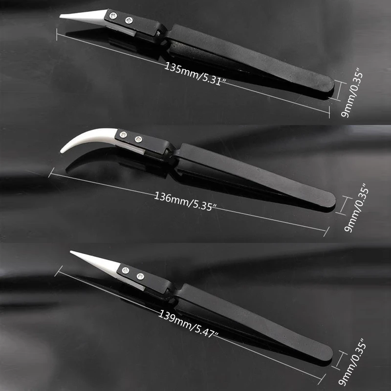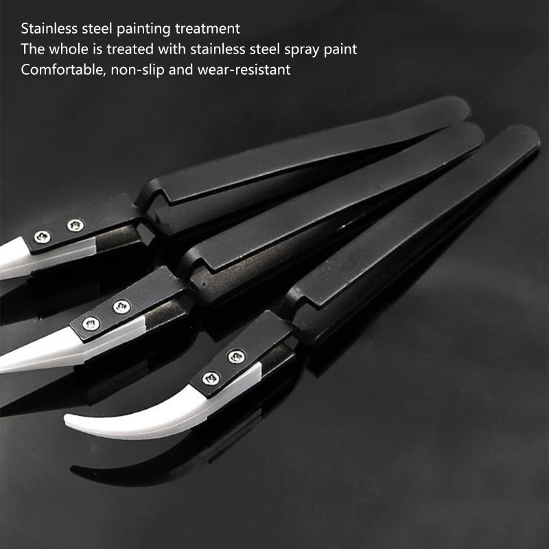 3x Set Heat Resistant Reverse Tweezers Ceramic Stainless Steel Tweezers for Soldering