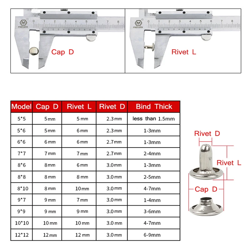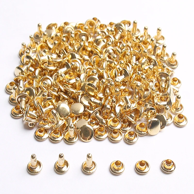 These 5-12mm Brass Double Cap Rivets are perfect for adding a punk style to your leather crafts, bags, belts, garments, hats, shoes, and wallets. Made from durable brass, these rivets are designed to withstand wear and tear while providing a stylish finish to your projects.
