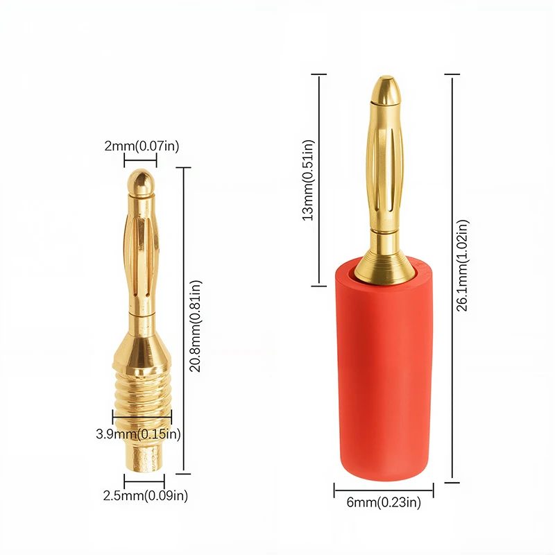 These 2MM Connector Audio Banana Plugs are designed for reliable audio connections. They feature a pure copper construction with a plastic shell, making them ideal for mini speakers and various audio applications.