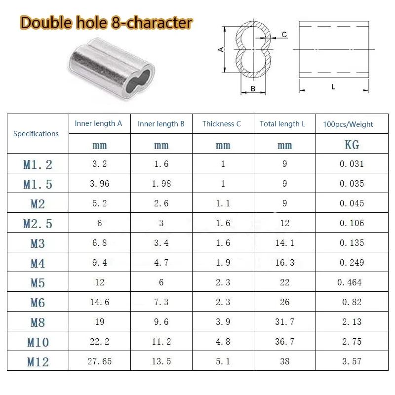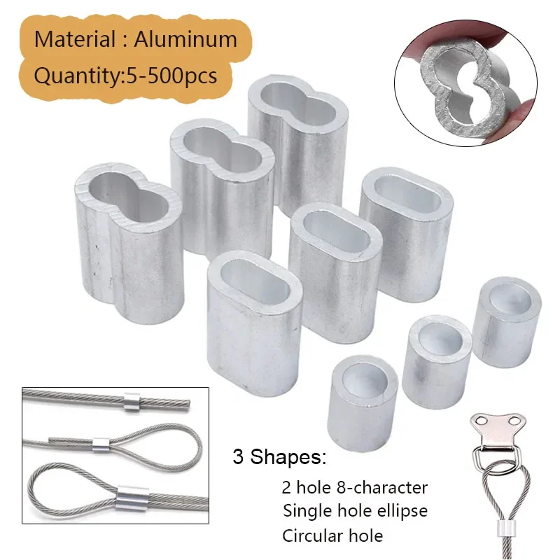 5-500pcs Aluminium Sleeve, Double Hole Cable Crimp Sleeve 8-Shape Aluminum Cable Stopper Crimp Rope Hardware Accessories