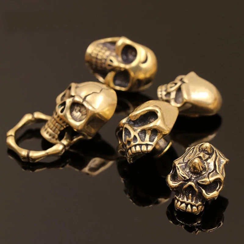 These unique brass skull conchos are perfect for adding a punk flair to your leather crafts, bags, wallets, and garments. Each set includes five pieces, featuring intricate skull designs that enhance the aesthetic of your projects.