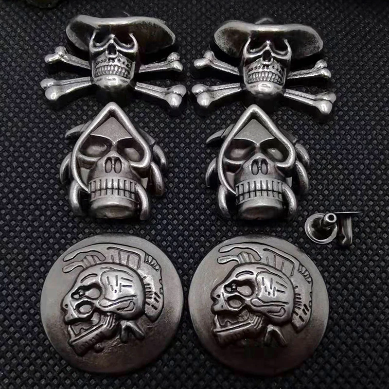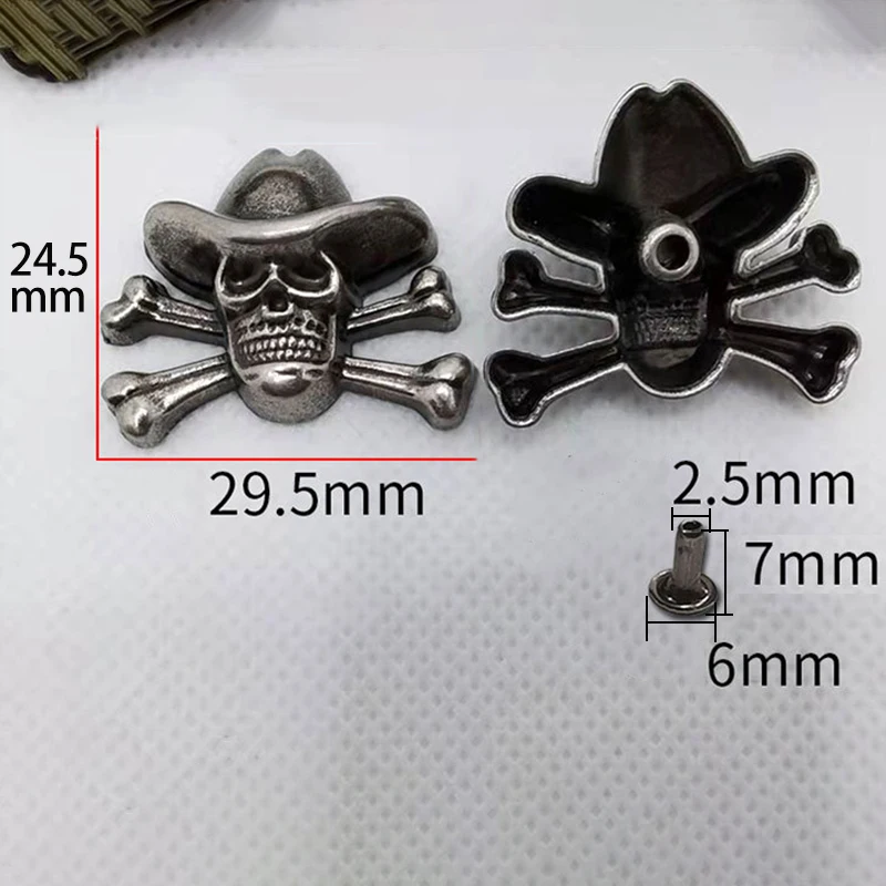 30mm Concho Pirate Skull Screw Back Coin Leather Craft Ornament Buckle