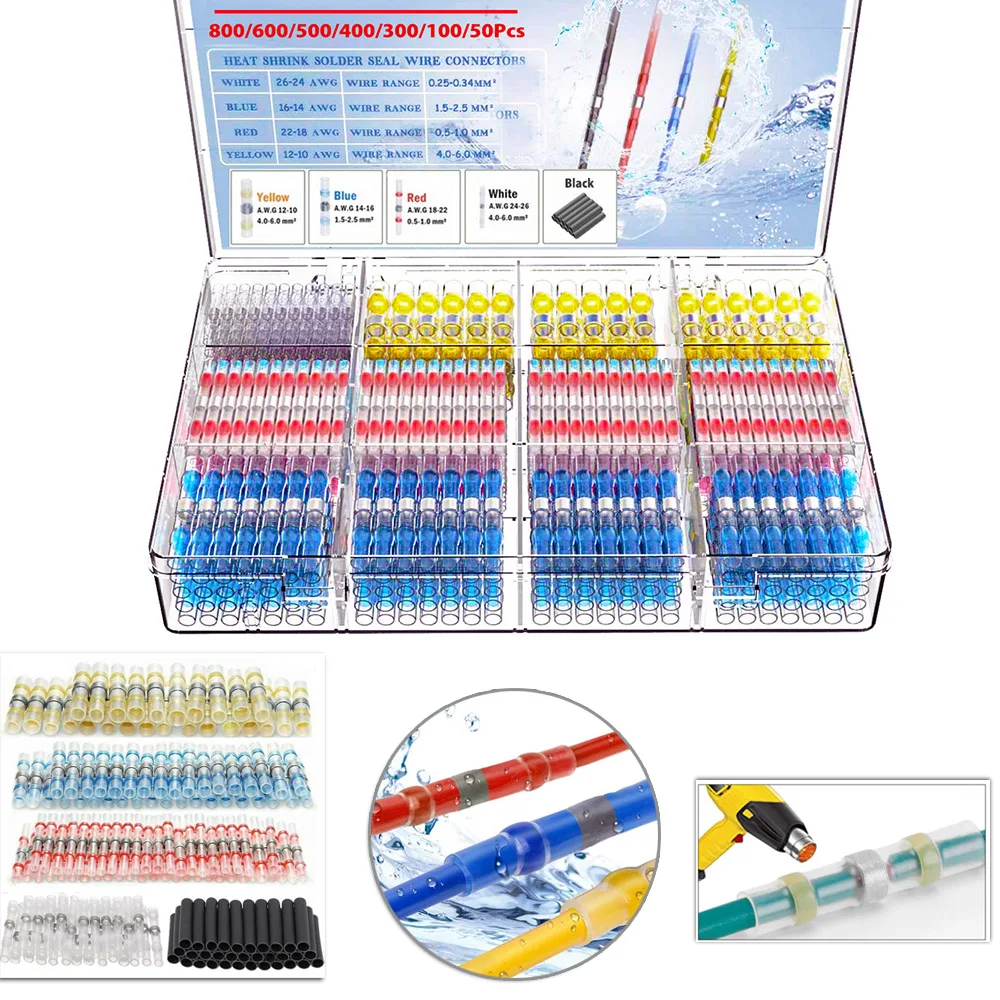 Introducing our 50-1000Pcs Heat Shrink Butt Crimp Terminals, designed for efficient and reliable electrical connections. These waterproof solder seal connectors are perfect for various applications, ensuring a secure and insulated connection without the need for crimping tools or soldering machines.