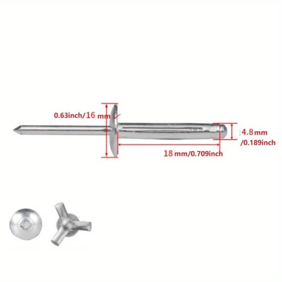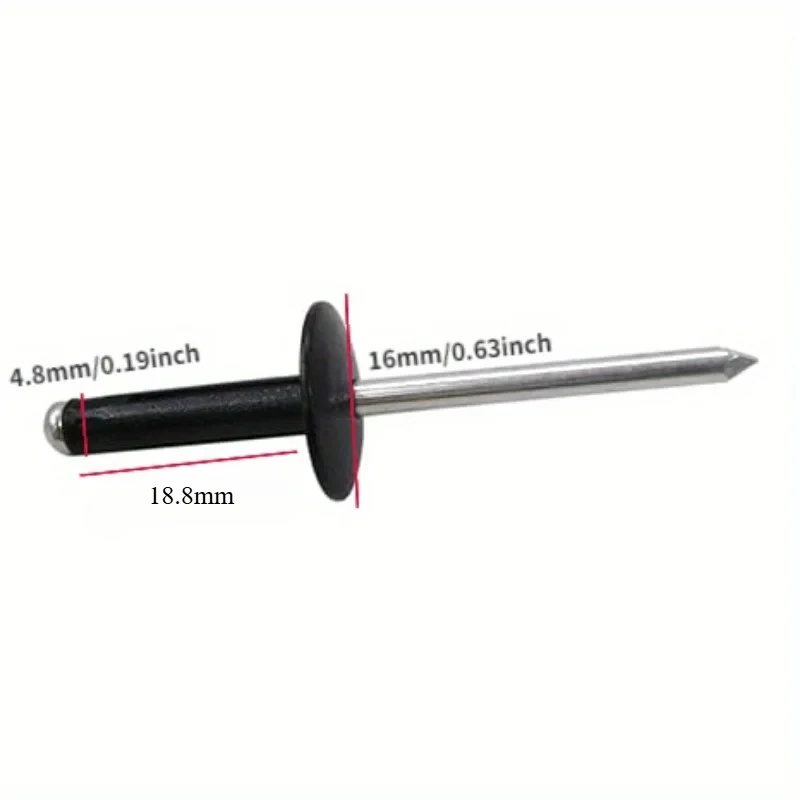 50pcs Black Silver Aluminium Trifold Blind Rivets Large Flange Rivets DIY Car Decor