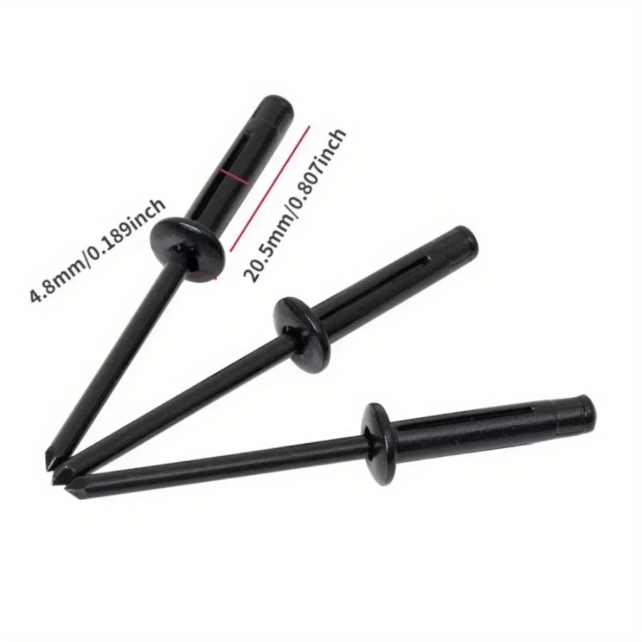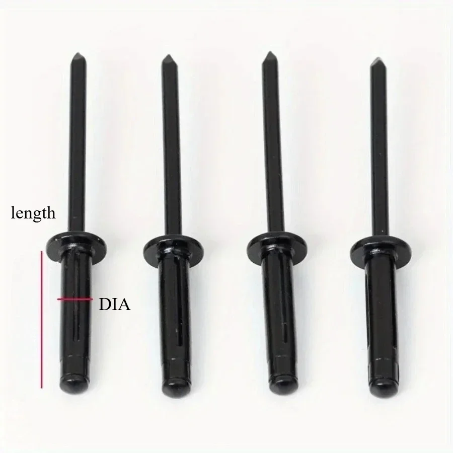 50pcs Full Black Painted Aluminium Trifold Blind Rivets for Car Bumpers