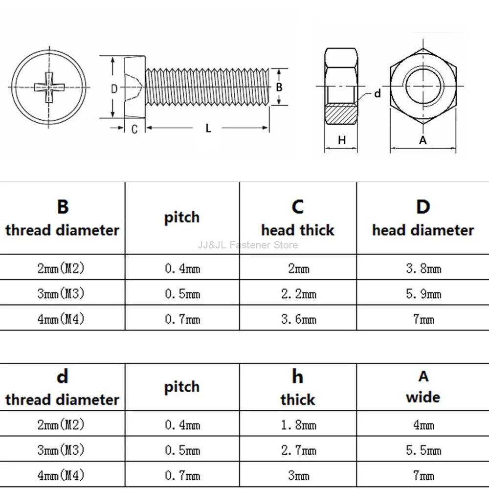 - Thread Pitch: Approximately 0.5mm (M3) / 0.7mm (M4)
