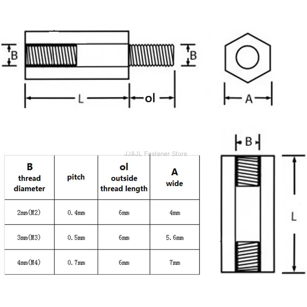 50pcs M3 M4 Nylon Plastic Hex Standoff Hexagon Pillar Male Female Spacer