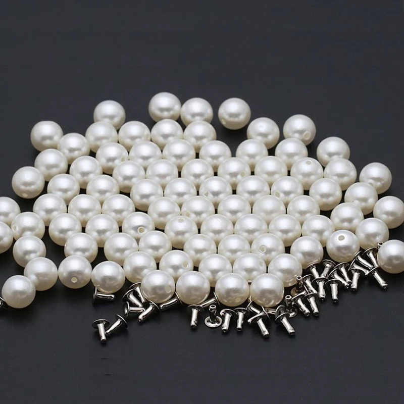 50Pcs Pearl White 6-20mm Pearl Rivets Button Head Acryl Rivet For Crafts Decoration