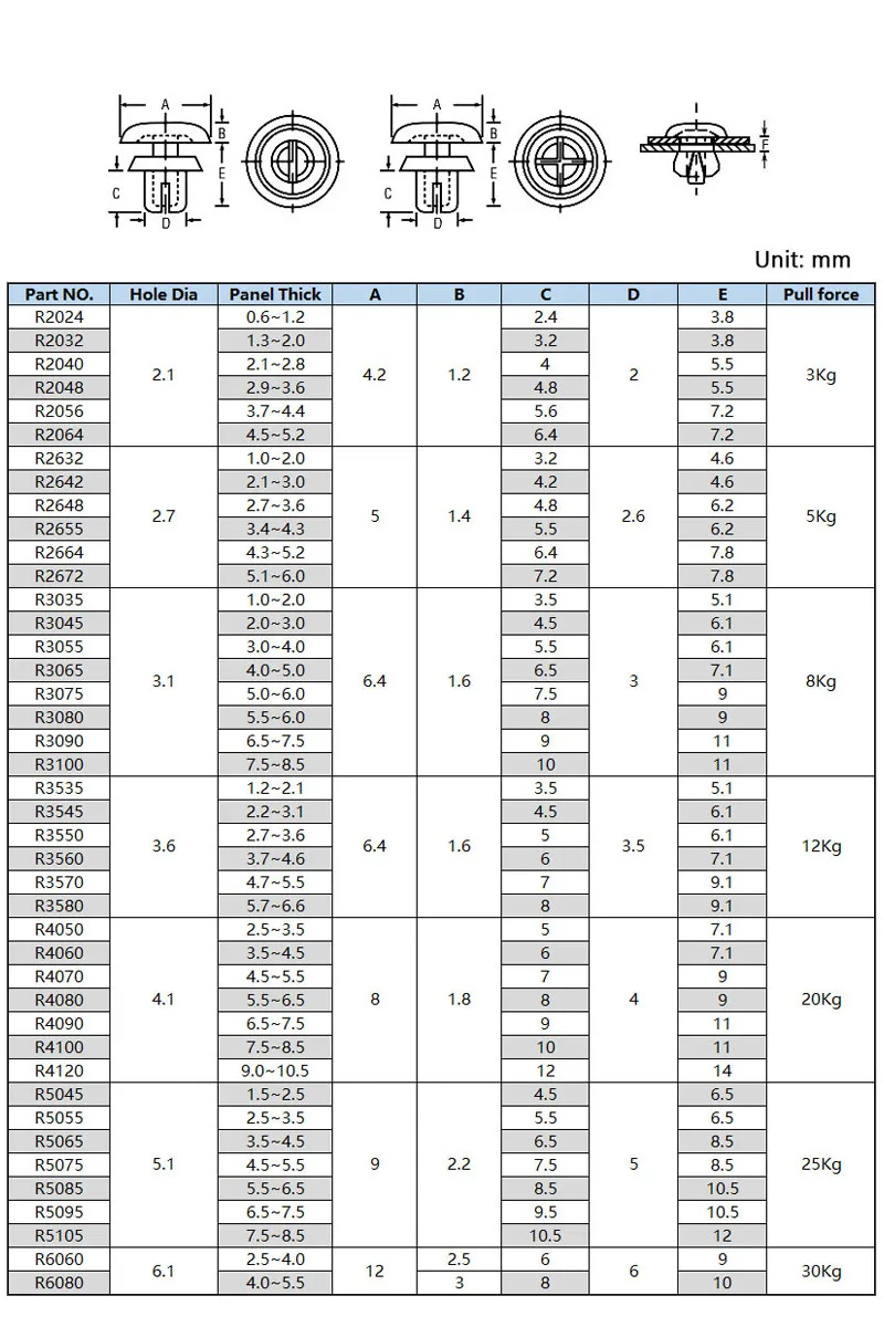 - Types: R Type Snap Rivet