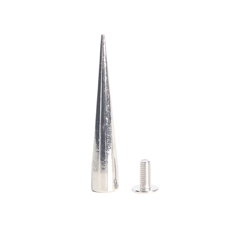 Introducing the 50 sets of 7*38mm Zinc Alloy Punk Spike Silver Cone Spots Studs, perfect for leathercraft projects. These rivets are designed to add a punk flair to your creations and come with screws for easy application.