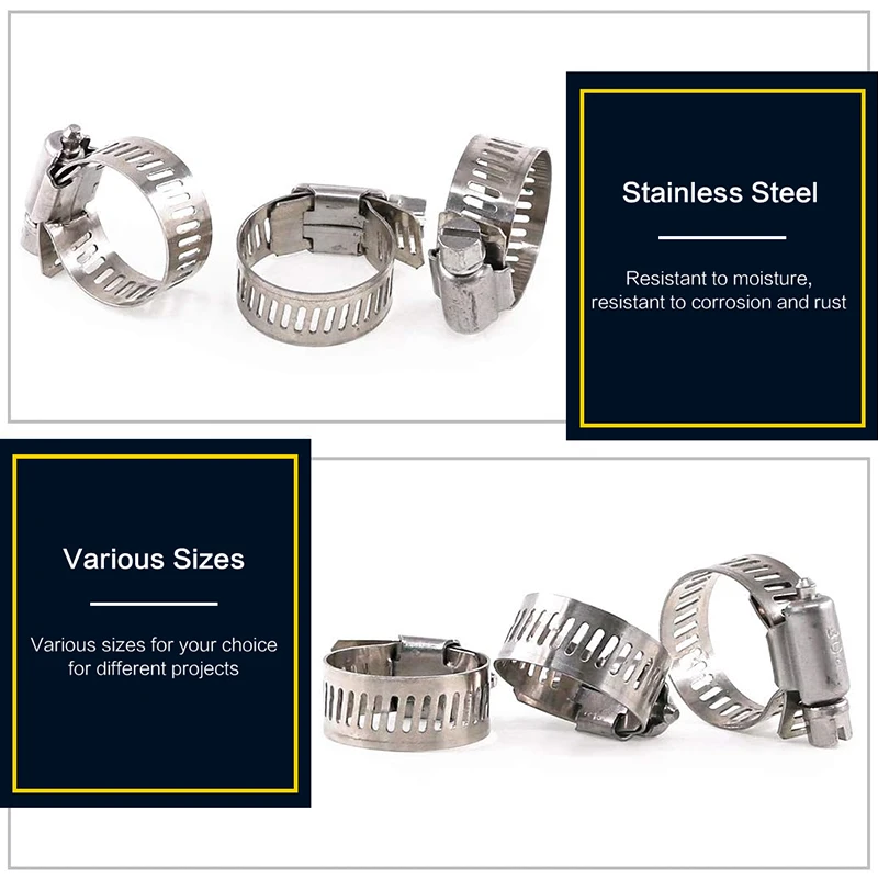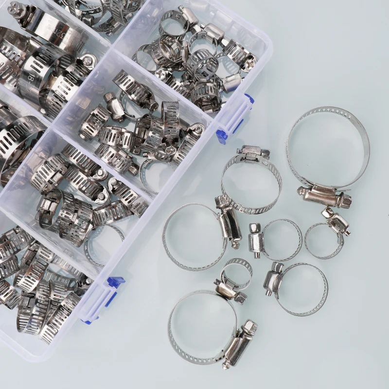 130/80/45pcs Stainless Steel Ear Stepless Clamp Worm Drive Fuel Water Hose Pipe Clamps Clips+ 1PC Hose Clip Clamp Pliers