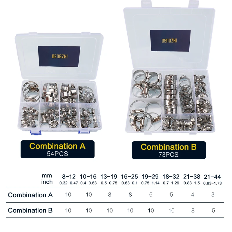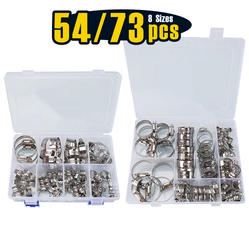 Stainless Steel Hose Clamp Assortment Kit 54-73pcs Adjustable 1/4-1-3/4