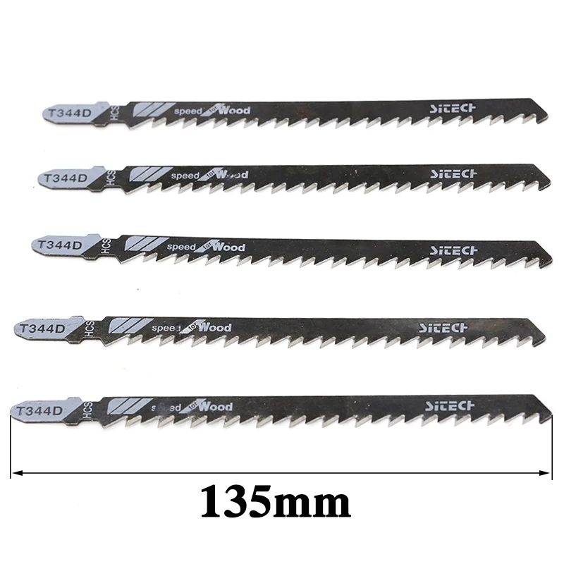 Introducing the 5PCS 135mm T344D Super-long Saw Blades, designed for clean cutting through wood, PVC, and fibreboard. These reciprocating saw blades are perfect for various power tool applications, ensuring precision and efficiency in your woodworking projects.