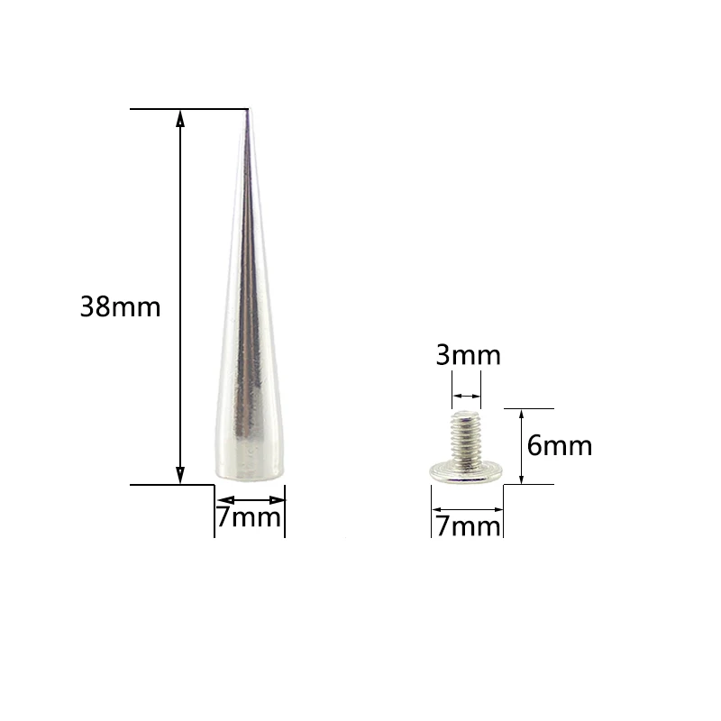 5pcs 7x38mm Silver Spikes and Studs for Clothes Rivets for Leather Punk Garment