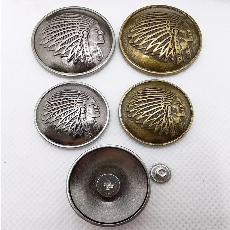 5pcs Southeast Tribal Indian Chief Head Leathercraft Saddles Conchos for Purse Wallet Belt Decor Screw Back