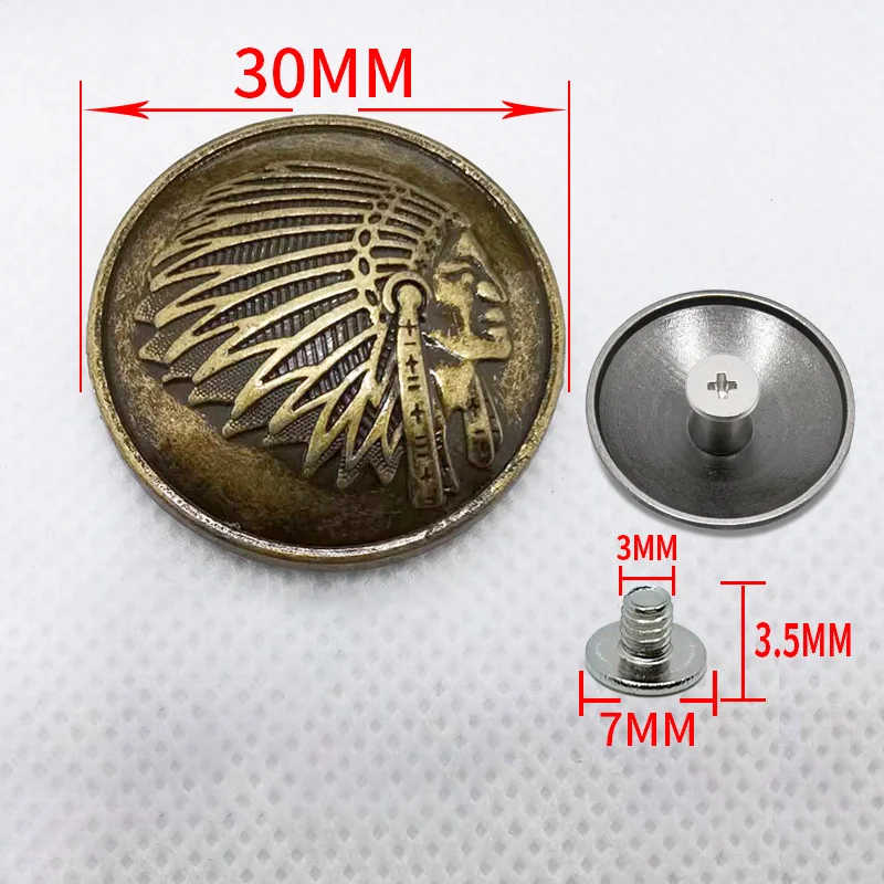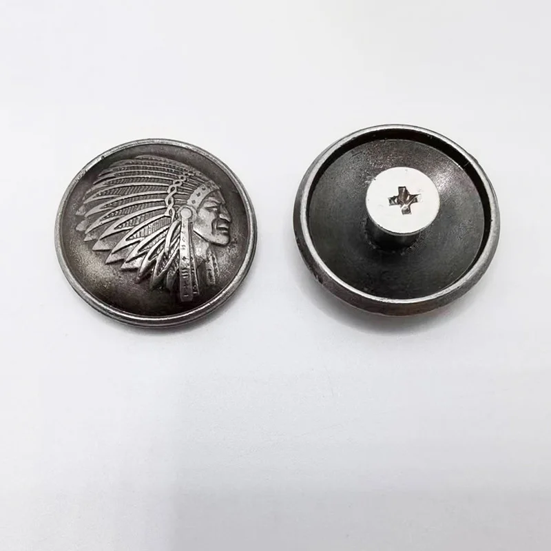 Enhance your leather projects with these beautifully designed conchos featuring a Southeast Tribal Indian Chief head. Perfect for adding a unique touch to purses, wallets, and belts.