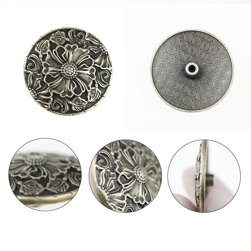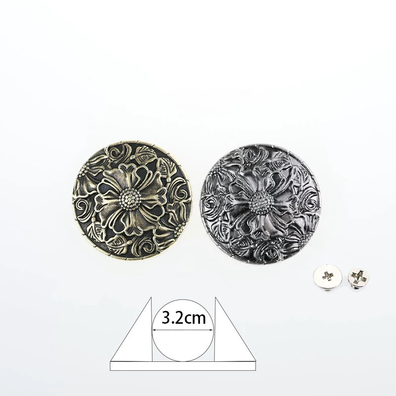 5Pcs Tang Grass Flower Craft Purses Leather Decoration Conchos Buckle Metal Screw Back Buttons Handmade Clothes Accessories