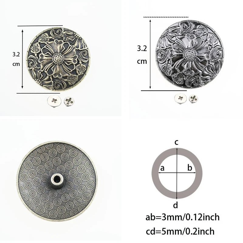 5Pcs Tang Grass Flower Craft Purses Leather Decoration Conchos Buckle Metal Screw Back Buttons