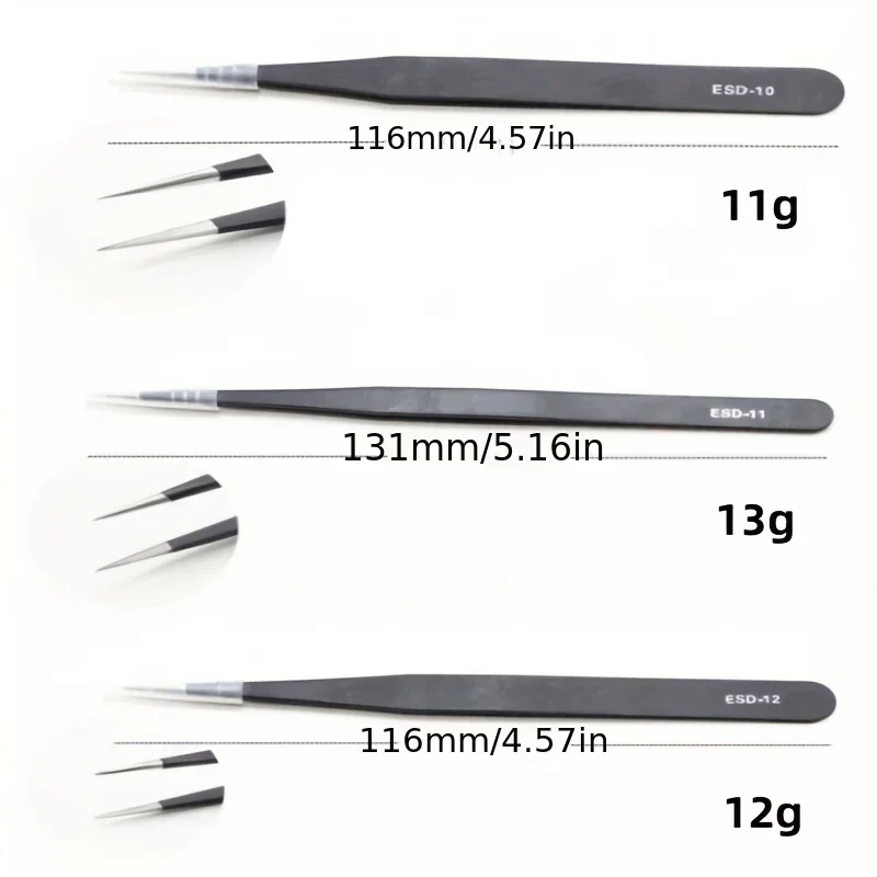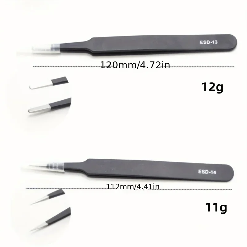 - Each tweezer measures approximately 11 cm in length.