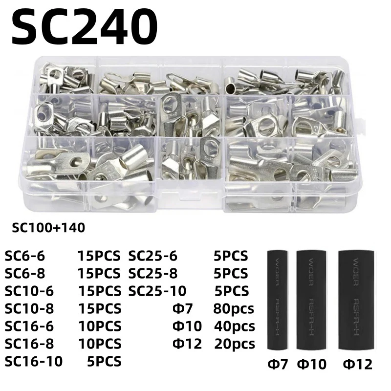 Introducing the 60/240PCS Ring Terminal Cable Shoes Lugs, designed for reliable electrical connections. These tinned copper lug wire eye connectors are perfect for both DIY enthusiasts and professionals, ensuring high conductivity and durability for various applications.